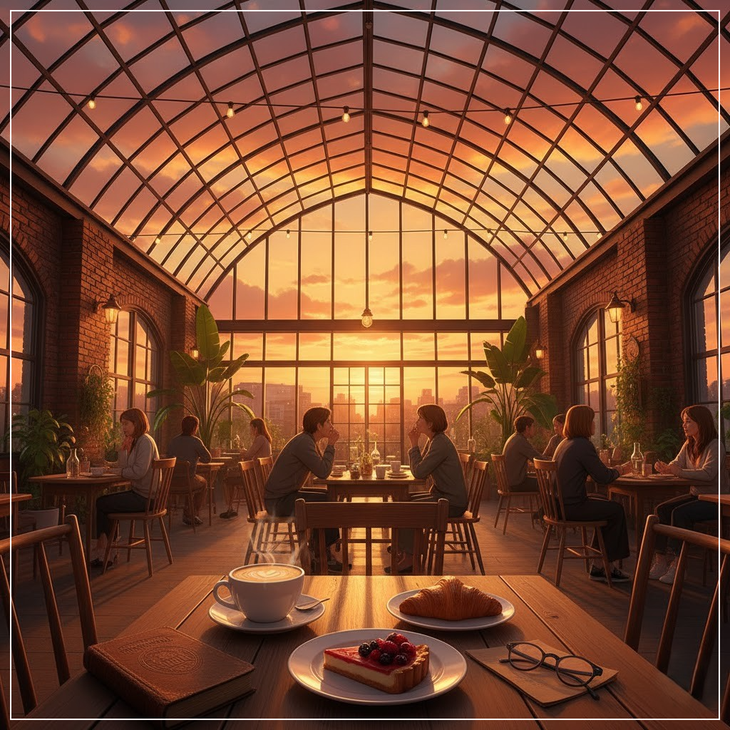 ‘앤드테라스’는 유리 천장을 통해 노을빛이 들어오는 브런치 카페로,